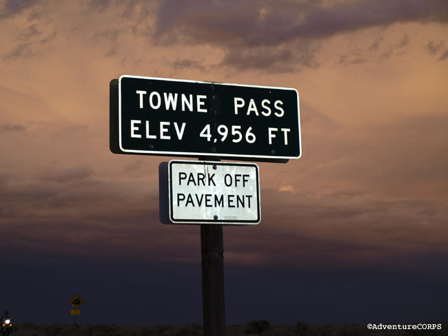 The summit sign at the top of Townes Pass (note that this picture was taken by AdventureCorps before I got to the top!) |