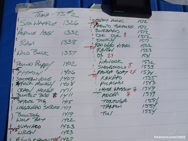 The list at time station 2 in Trona later in the day - you can see Nanook entered at 15:32. |