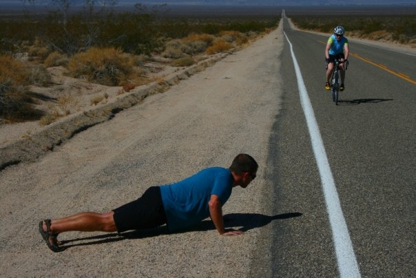 Mike doing pushups on the roadside during stage 6. |