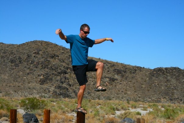 Mike doing strange poses on the top of posts during stage 6. |
