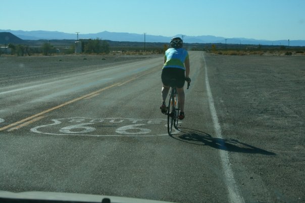 Heading into Amboy on Route 66 early in stage 8. |