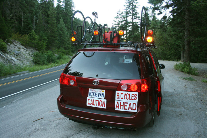 ![]() Sandy's bike (the backup bike) on the BikeVan on Mt. Hood |