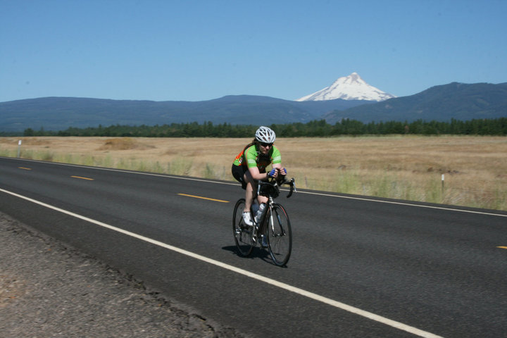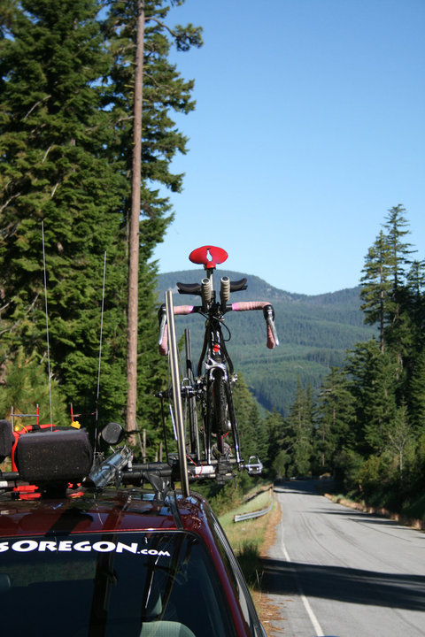 ![]() Making the turn onto Forest Road 48 after the climb up Mt. Hood |