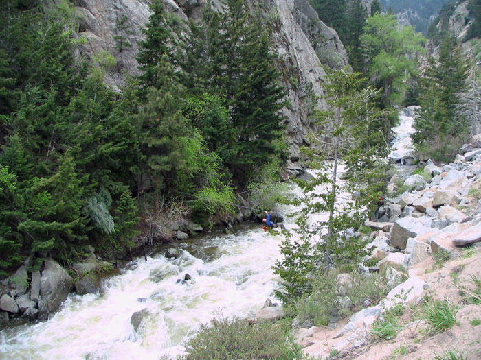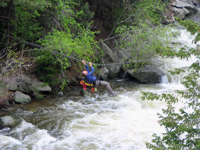 ![]() Someone crossing the river on a rope near Boulder Falls. |