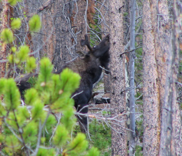 ![]() A moose along the highway near Rocky Mountain National Park. |