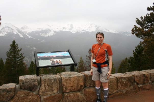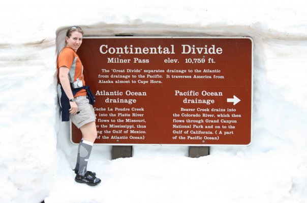 ![]() Joan at the Continental Divide (note the fashion sense - compression socks, sandals, shorts....!). |