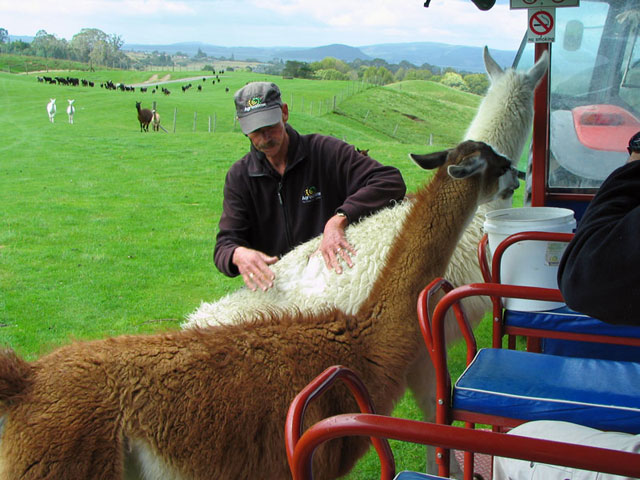 ![]() The llama eating off the truck while the guide shows us its wool. |