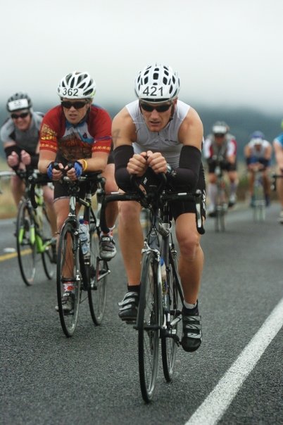 ![]() The suffering is going on at full strength here! Coming back on the first loop into a headwind after getting drenched in a brief rain storm! |