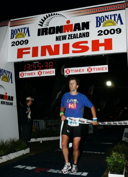 ![]() Mike breaks the tape on his first Ironman, and only second triathlon! |