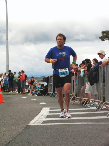 Ironman was the driving force behind our trip, however we certainly did not let it dictate our trip or limit our adventures!! :) Our taper leading up to Ironman included all the crazy Queenstown activities, plus the 20 mile backpacking trip on the Routeburn Track! Maybe we weren't completely rested going into Ironman, but we were certainly having fun and enjoying ourselves!! :) Anyway, Ironman itself went well. Despite rain on both the bike and the run, conditions were "manageable", and could have been much worse. The volunteers and cheering crowds were great, as with all Ironmans I've participated in. I had the neat experience of being "adopted" by a local business since I was an international athlete. My adopting business, PSIS, went all out in terms of putting a big display in their window and putting a placard out on the street with my name and number - talk about feeling special! :) They also put a sign out on the run course to encourage Mike and me! Anyway, as for the event itself, it was my fastest Ironman to date, and I finally broke 13hrs finishing in 12:59, and Mike had a perfectly respectable time of 13:55 after doing great on the swim and the bike but then having some problems on the run (blisters and crampint) - but not bad at all for his second triathlon ever!!